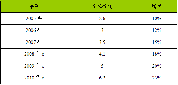 2005-2010年我国复方羚角降压片产品需求规模 分析 及预测表