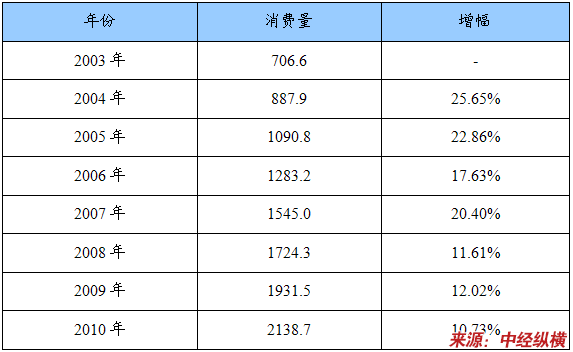 2003-2010年我国金属维护结构消费量 分析 及预测表