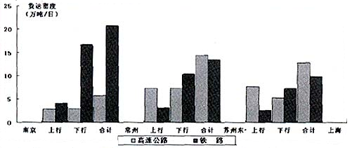 两个路段的货运密度与相应的沪宁铁路、京广铁路河南段相比,基本持平。在常州—上海和郑州—漯河两个区段上,高速公路的货运密度还比铁路干线有所超出。而在南京—常州和漯河—信阳两个区段上,铁路干线的货运密度高于高速公路,见图1和图2。高速公路上下行的货运密度比较均匀,而铁路干线由于货源不均衡,所以上下行货运密度差别很大。