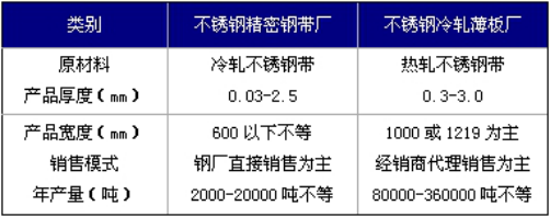 目前我们习惯性的把不锈钢冷轧窄带分为普通冷轧钢带和精密冷轧钢带两种。精密钢带表面普遍达到BA甚至有到8K级别;厚度普遍在0.5mm以下,最薄甚至可以达到0.03-0.05mm左右。而且由于压延的厚度很薄需要具备良好的延展性、冲压性以及弯曲等性能,所以对坯料材质的元素含量要求较高,目前国内的众多精密钢带企业一般都是以大钢厂的作为坯料。同时对辊轧机器设备的要求也很高。而且产品一般在摩擦片、刀片、纺织针、弹簧、微电子、信息技术、计算机、汽车零部件、医疗、金属软管、半导体等有特殊需求的 行业 中应用。