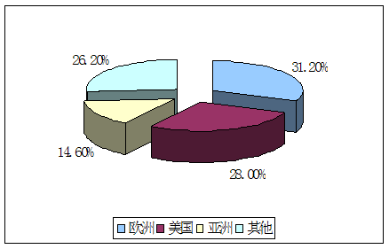 仅在台湾地区,一年的胶原蛋白类产品的消费量就达到新台币400多亿元。可见胶原蛋白类产品的市场之广阔,发展前景之巨大。根据需求量较大的医药、食品、化妆品等 行业 的发展情况,世界胶原蛋白的市场需求量达到1400万吨,销售额100-500亿美元。其中,欧洲和美国的市场最大(分别占31.2%和28.0%)。亚洲的市场仅次于美国(占14.6%),随着亚洲经济的迅速崛起,尤其是在中国,相信今后几年内,胶原蛋白在中国的消费将以不低于20%的高速增长。
