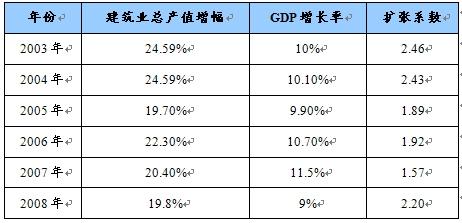 2004年下半年开始,由于上半年宏观调控效果开始显现,建筑产业扩张速度得到遏制,但是还是在一个比较高的水平上。近年来建筑产业的成长性非常高,但是与经济波动的相关性比较高。