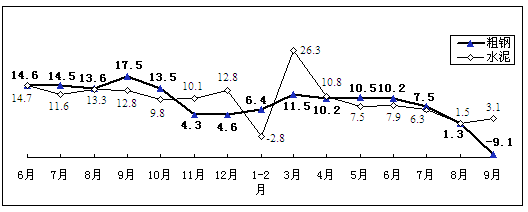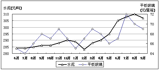 2008年前三季度,全国水泥产量101216万吨,同比增长6.9%,增速同比减缓8.1个百分点;平板玻璃产量41348万重箱,增长9.2%,减缓5.3个百分点。水泥价格高位回落,平板玻璃价格波动较大。重点建材企业水泥平均出厂价8月份达到310元/吨,为历史最高水平,9月份回落至307元/吨,同比上涨21元/吨;平板玻璃出厂价9月份为69元/重量箱,比今年以来最高的7月份回落3元/重量箱,同比上升1元/重量箱。9月末,重点建材企业水泥库存905万吨,同比上升8.7%;平板玻璃库存2250万重量箱,上升31.1%。前8个月,建材 行业 实现利润691亿元,增长35.8%。其中,水泥 行业 利润182亿元,增长58%;平板玻璃 行业 利润4.3亿元,下降71.7%。
