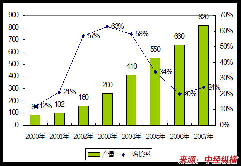 今后市场还将继续扩大,预计到2010年达到320亿元。GaN类LED的供货量到2010年将超越日本,成为全球第2大GaN类LED生产国。在中国LED市场扩大的同时,中国LED厂商的技术能力也在提高,因此,在中国市场上,国产LED的比例正在逐渐扩大。虽然在2002年阶段还基本依靠进口,但是到2006年,中国市场上LED的国产比例达到了43.9%。支撑中国LED 市场发展 的高亮LED,在2002~2006年的年平均增长率高达35%,2006年高亮LED市场的规模为90亿元。从蓝色LED和白色LED等高附加值品种的GaN类LED来看,中国2006年的国产比例为30%。中国GaN类LED的供货量正在逐年递加,到2010年预计将达到每月16亿5000万个,超过日本,成为全球第2大GaN类LED生产国。
