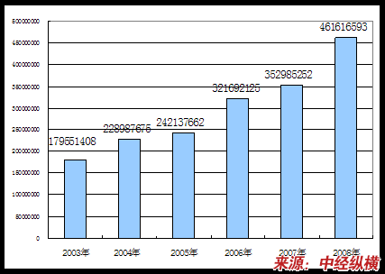 2003-2008年水泥制造 行业 产品销售收入变化状况 分析