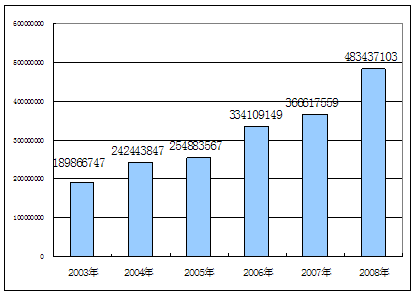 2003-2008年水泥制造 行业 工业总产值变化状况 分析