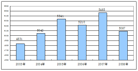 2003-2008年水泥制造 行业 从业人员变化状况 分析