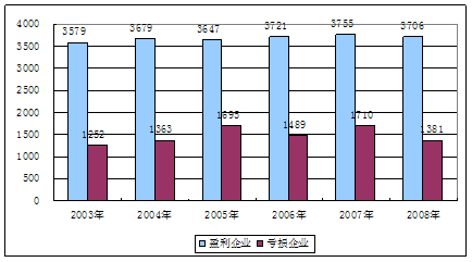 5、2003-2008年赢利亏损企业数量变化状况 分析