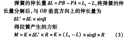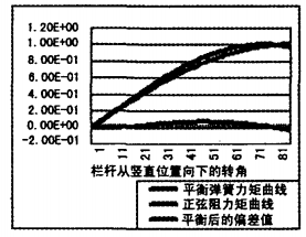实际应用中适当预紧弹簧使其有一定初拉力,服机构和传动系统摩擦阻力很有必要,从理论上簧的力矩曲线形状没有影响,为整体动态平力矩提供了一定余度。根据栏杆材质长度调整弹并联根数以适应平衡效果。