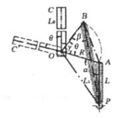 如下图所示,起始位置时摆臂OA与弹簧原长PA的夹角为a;转动时,由于摆臂与栏杆同固定在输出轴上始终成7夹角,所以摆臂从伽转到OB时,栏杆由OC转到DC’位置,摆臂转角和栏杆转角均为0, 0的取值范围是0—900。摆臂OA=OB=R、弹簧原长PA=L、弹簧伸长后长船=L。,弹簧K、栏杆OC=L0为定值。