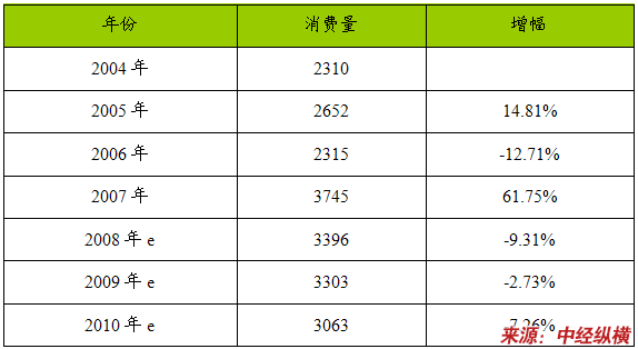 2004-2010年我国空调室外机消费状况 分析 及预测表