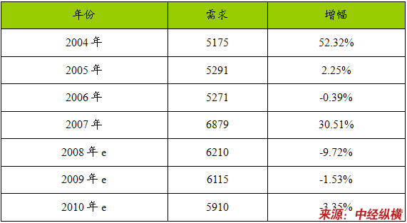 从需求角度看,虽然空调室外机产品在理论上存在大量的需求(一户多机),但受到消费环境的限制(包括消费支出、气候状况、住房条件),08年国内空调市场的需求与07年相比下降了-9.72%,主要原因在于一拖多空调技术的发展迅速,因此预计空调室外机市场需求量降低,预计到2010年供求将达到平衡。