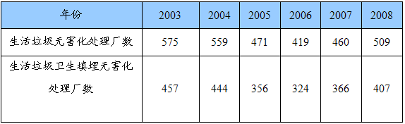 2003-2008年我国生活垃圾无害化处理厂数统计