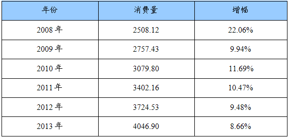 2008-2013年我国机制兰炭产品消费量预测