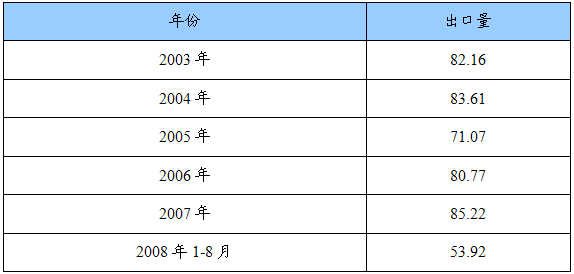 2003-2008年8月我国机制兰炭进出口量值统计