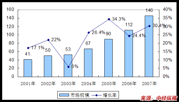 不停车收费系统(ETC)系统,是一种用干公路、大桥和隧道的电子自动收费系统。近几年随着高速公路的建设发展,高速公路通信、监控和收费系统的市场规模高速增长,高速公路相关的通信、监控与收费系统投资规模从2001年的41亿元增长到了2007年的146亿元。