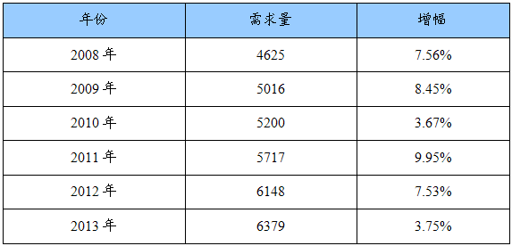2008-2013年市场供需情况预测