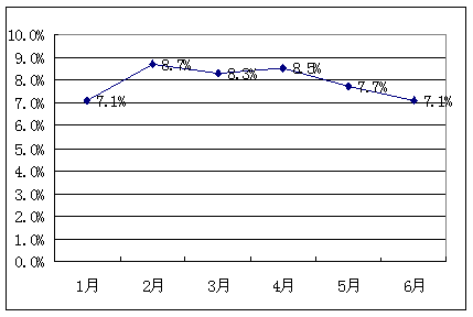 当然,也存在着许多有利于物价涨幅回落的因素。首先,中央已将抑制全面通货膨胀作为今年宏观调控的首要任务,将不断采取各种措施控制物价上涨。今年以来,国家在控制公用品价格上涨同时,又先后对小麦粉等粮食实行出口配额许可证制度,并提升化肥出口关税,降低冻猪肉等食品进口税率,积极通过财政政策缓解通胀预期和压力。其次,今年全国夏粮产量比上年增长2.6%,连续第五年获得丰产丰收,库存与市场供应比较充足,如果秋粮不出现大面积减产,国内粮食价格受国际市场影响不会很大。与此同时,上半年猪牛羊禽肉产量也同比增长4.8%,存栏量同比增加5%,农贸市场猪肉价格涨幅正在呈逐月回落态势。第三,在我国外贸出口增速放缓、国内产能不断增加情况下,国内商品市场供给会进一步扩大,消费品市场总体上供大于求矛盾将越来越突出,商品供应者在激烈的市场竞争下难以进一步提高价格。第四,由于去年下半年物价上涨较快,导致今年价格翘尾因素较大。随着年末临近,计算CPI时同比基数将逐渐增大,CPI涨幅将逐渐减小。