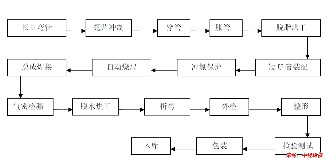 空调冷凝器生产工艺流程简图