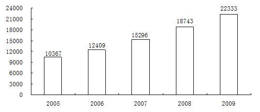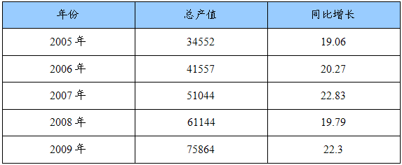 2005-2009年我国建筑业总产值增长情况