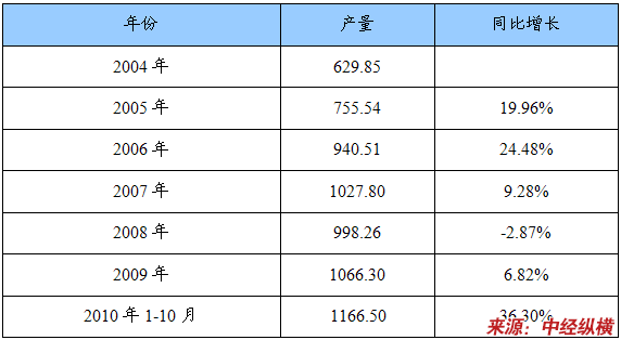 2000-2009年期间,中国乙烯产量的年均增长速度为9.57%。预计2010年产量同比增长28.97%,市场开始复苏。