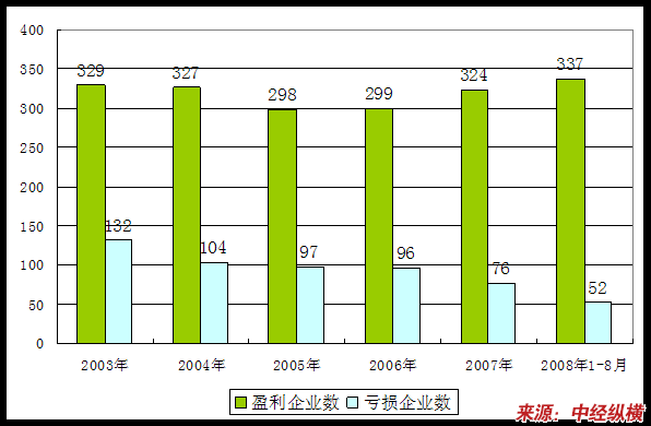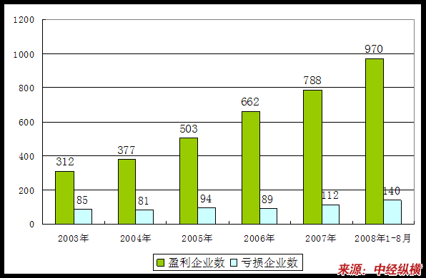 2003年-2008年1-8月赢利亏损企业数量变化状况 分析