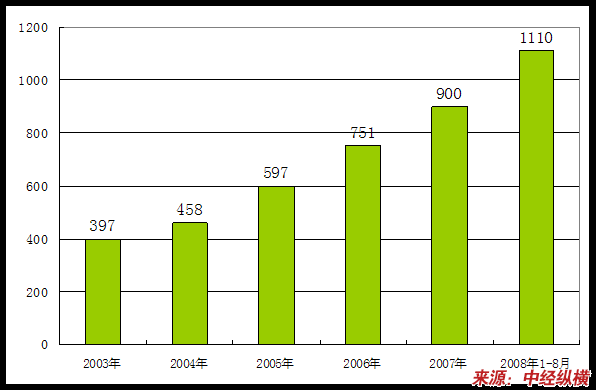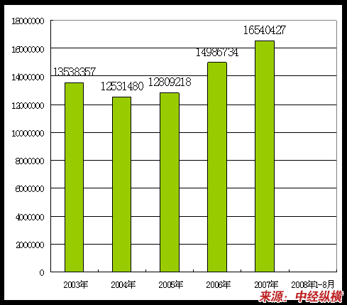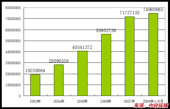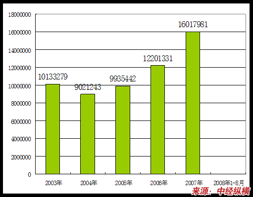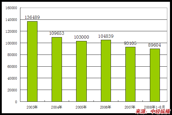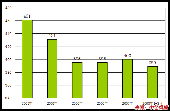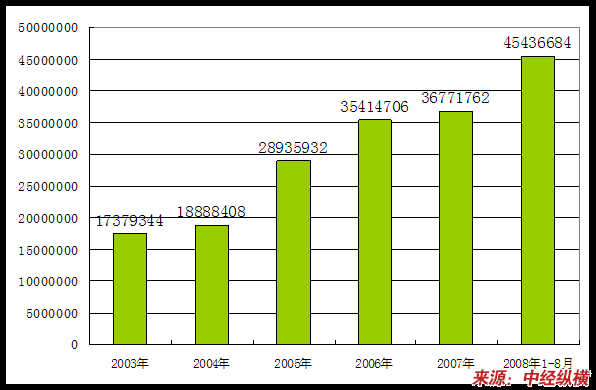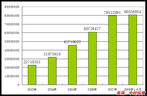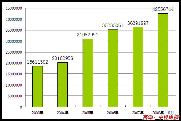 2003年-2008年1-8月企业数量变化状况 分析