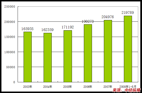 2003年-2008年1-8月工业总产值变化状况 分析
