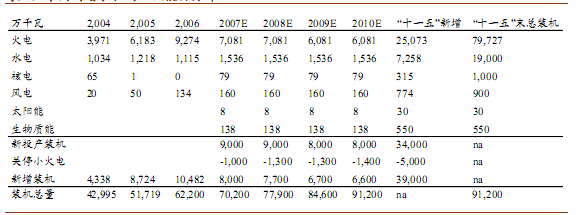 新增装机一次性能源总量