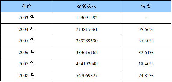 销售收入及增幅统计表