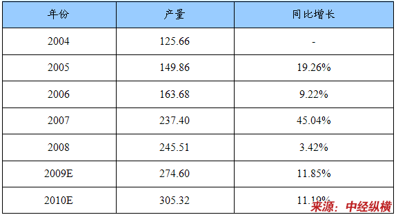 2004—2010年玻璃门饮料冷藏柜产品产量 分析 及预测表