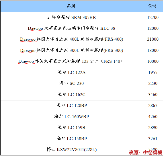 近期玻璃门饮料冷藏柜部分品牌报价统计