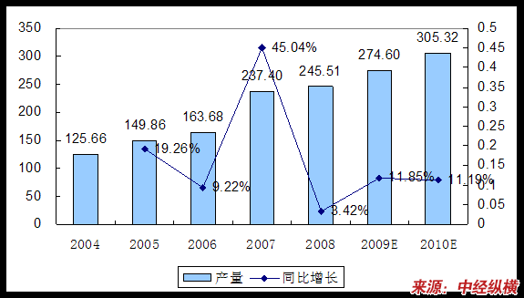 由于2008年的经济危机影响,玻璃门饮料冷藏柜产量增速下滑,预计今年将扭转增速回落趋势,产量稳定增长。
