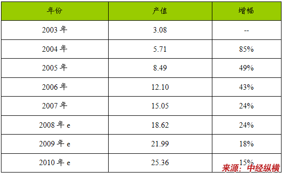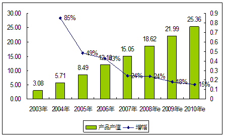 2003—2010年蒸发式冷凝器产品产值 分析 及预测表