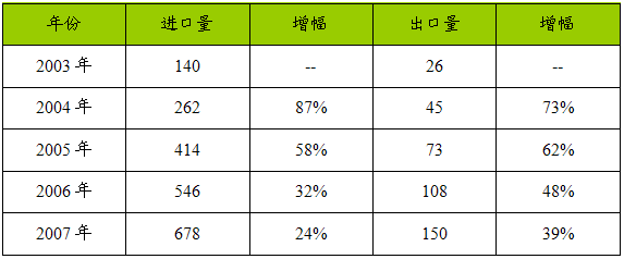 2003-2007年我国蒸发式冷凝器进出口 分析