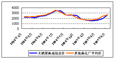 煤沥青产品的主要原材料是焦油,2008年,煤焦油价格一路飙升,从2300元/吨涨至7月份的3500元/吨,有的地方甚至达到了4000元/吨,而后煤焦油价格开始下跌,截止12月20日,山西省煤焦油价格已经跌至1600元/吨。总而言之,我国国内市场供求关系是影响煤沥青价格的关键因素,原材料价格影响产品成本。