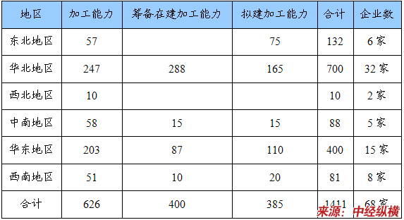 经初步调查现有大中型煤焦油加工企业44家,加工能力626万吨,小企业加工能力约100万吨。目前筹备和在建的煤焦油加工企业有18家,加工能力400万吨。 规划 拟建的还有16家,加工能力385万吨。如果这些项目都建成的话,煤焦油加工能力1400万吨左右。