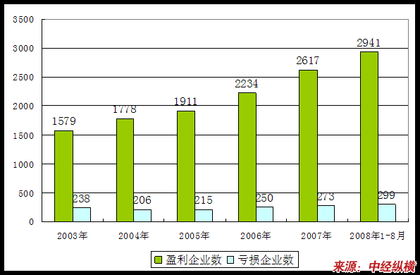 2003年-2008年1-8月赢利亏损企业数量变化状况 分析