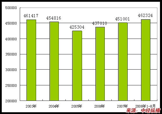 4、2003年-2008年1-8月企业数量变化状况 分析