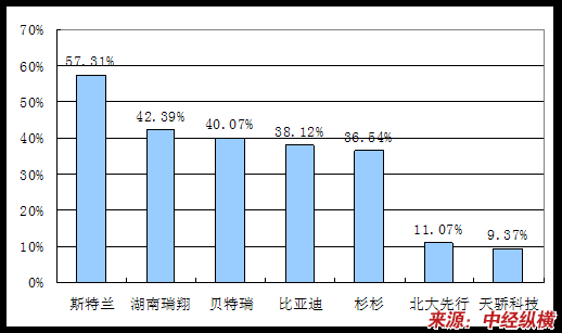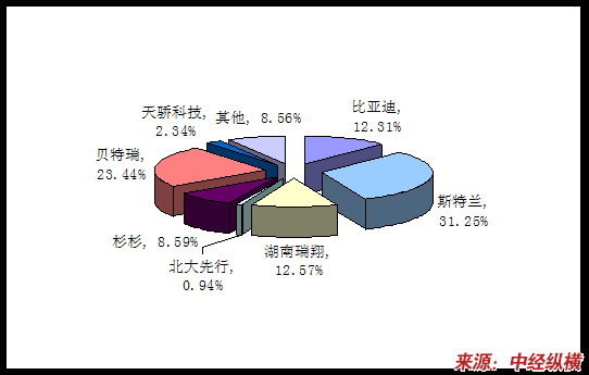 磷酸亚铁锂属于新材料,产品开发技术难度大,生产线投资高,目前国内具备批量生产能力的企业数量还比较少,从市场占有情况看,几家主要生产企业杉杉、湖南瑞翔、天津斯特兰等占据主要市场地位, 行业 集中率较高。