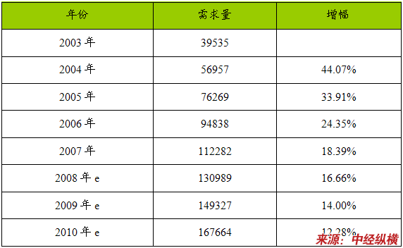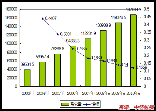 2003-2010年我国冷冻机市场需求 分析 及预测表