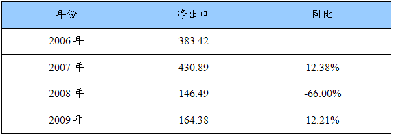 随着我国冰箱、空调的发展,我国已经是冷凝器生产大国,产品出了满足国内市场需求,还有大量产品出口到海外地区,出口量大于进口数量,净出口量呈递减趋势,尤其是2008年受金融危机影响,出口数量大减,预计未来随着全球经济复苏,我国产品出口趋势将继续保持增长态势。