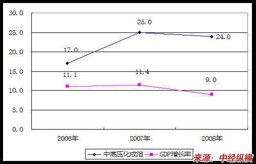 从图中可以看出,中高压化成箔所处的 行业 产值增幅与与国家宏观经济环境相关程度较大,随着GDP的增加,产值增加, 行业 工业总产值增长率高于国家GDP增长率, 行业 前景看好。