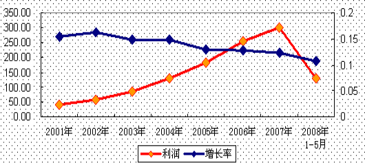 2001——2008年5月电子元件 行业 销售毛利率与利润变化趋势