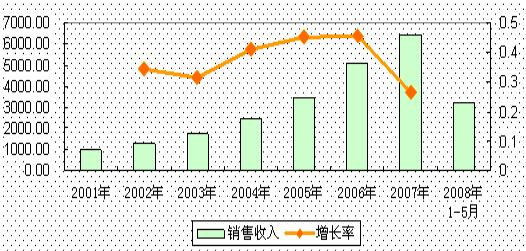 2001——2008年5月电子元件 行业 销售收入及增幅