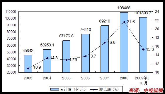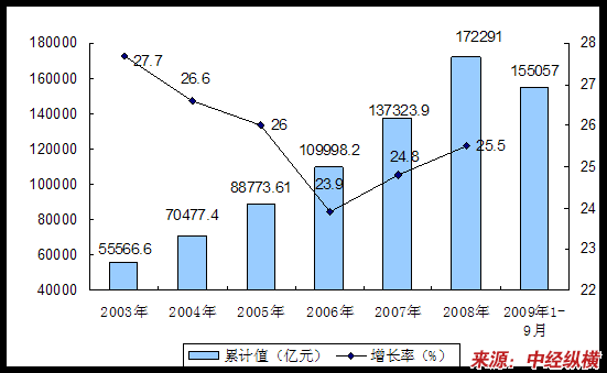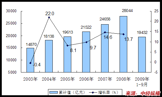 2003-2009年9月我国全社会固定资产投资情况