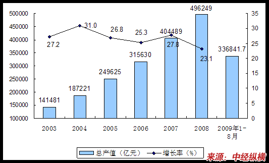 2003-2009年8月我国工业总产值情况