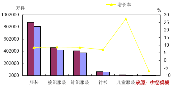 截止到2008年底,我国共生产衬衫112419.84万件,同比2007年增长6.86%。预计全国十大名牌衬衫产量比上年年大约增长10%-15%。中小企业的中低档产品增幅具有不确定性。由于产品的积压,一部分非专业企业将另寻出路。