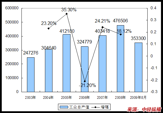 第四节 2003-2009年8月墨水、墨汁制造 行业 工业总产值发展状况