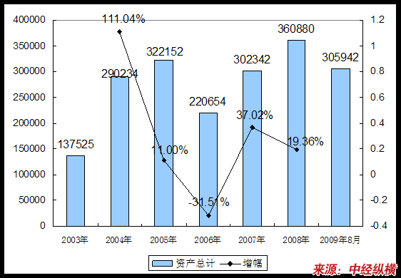 第五节 2003-2009年8月墨水、墨汁制造 行业 资产总计发展状况